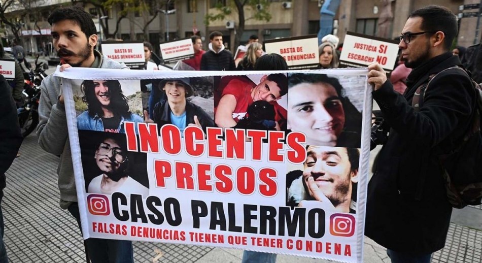 Fuera de los tribunales donde se desarrollaba el debate y junto a una veintena de familiares y amigos ambas reclamaban este mediodía exhibiendo pancartas y carteles con frases como "inocentes presos de Palermo"; "justicia sí, escrache no"; "presunción de inocencia, valor en decadencia" y "basta de falsas denuncias".